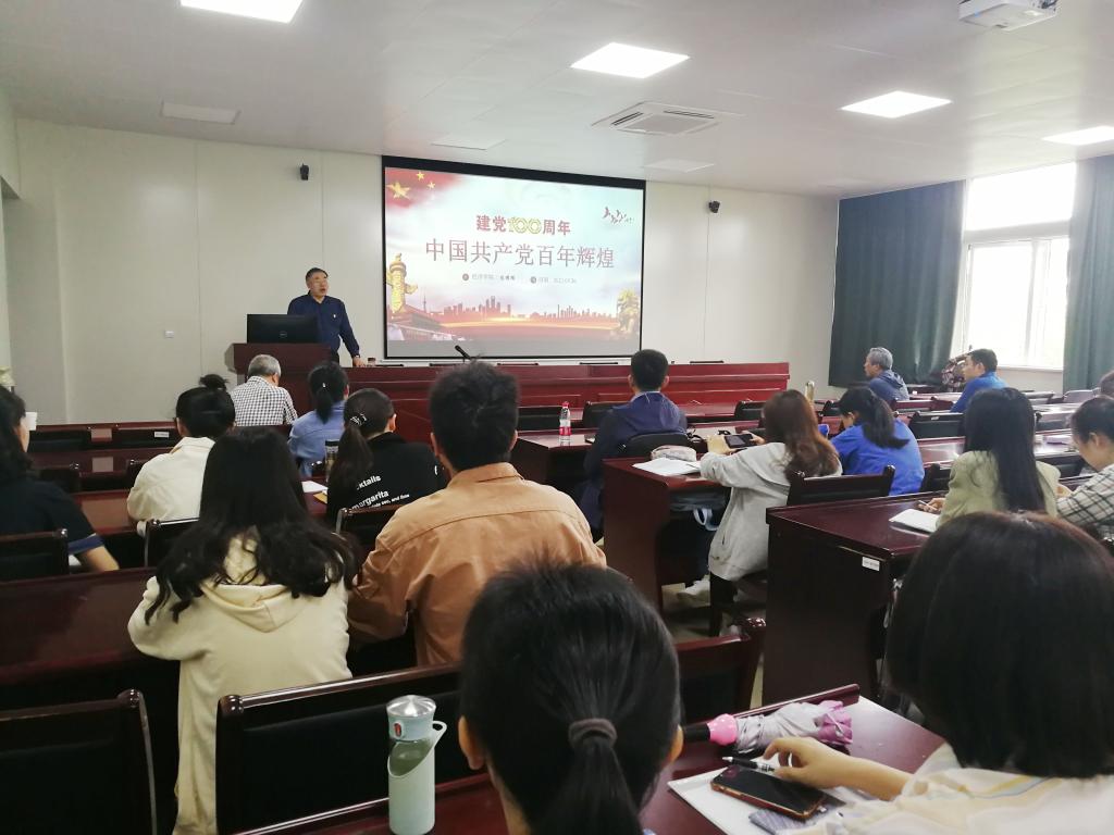 307会议室讲授题为“中国共产党百年辉煌”的专题党课。统计系教工党支部,教务处党支部、体育博彩