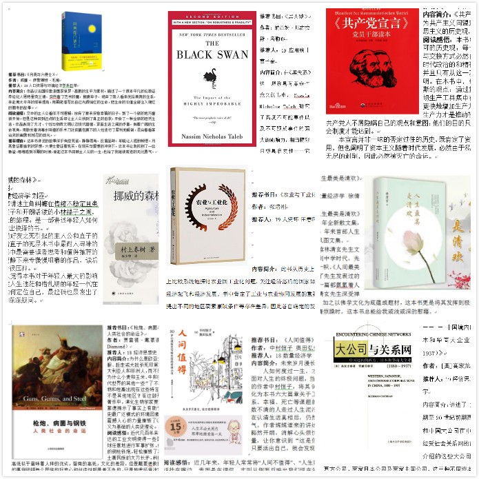 研究生会与研究生党支部联合开展“线上世界读书日——一本好书我推荐”活动。本次活动得到学院研究生同学的积极响应,大家纷纷推荐自己认为最有价值的书目并分享阅读感悟。其中,有《平凡的世界》《活着》等国内名篇,有《挪威的森林》《月亮与六便士》等海外巨著,也有《资本论》《共产党宣言》等经典理论,更有《农业与工业化》《新发展经济学》等专业著作。参与活动的同学表示,这些经典书目中有着震撼人心和催人奋进的力量。虽然仍处于疫情防控期间,同学们足不出户便可体会自然之美,感受人文之力,不仅拓宽了视野,也从书中汲取了前进的力量。