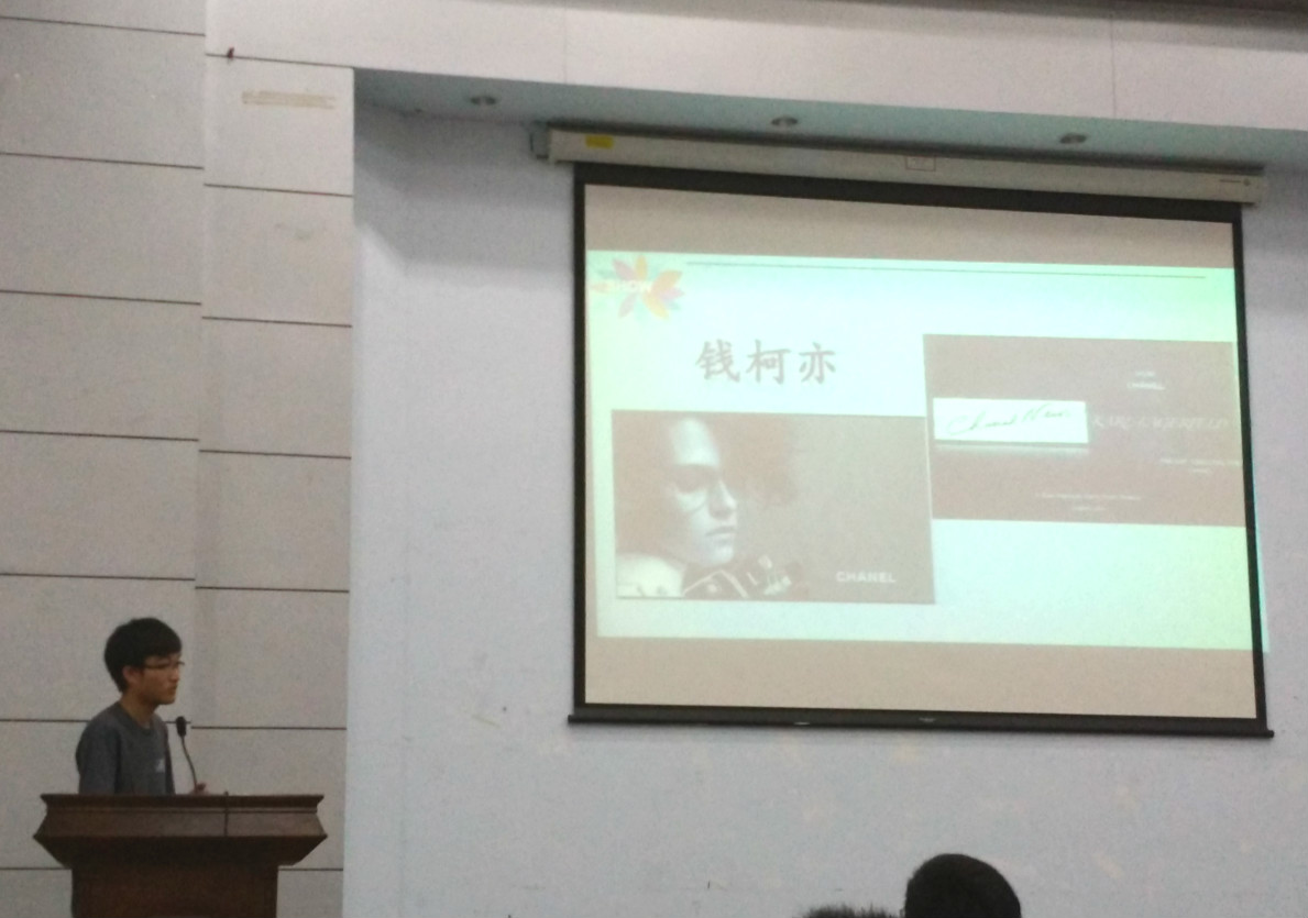 经过初赛的层层选拔,共有10名选手脱颖而出进入决赛。决赛共分为三个环节,即“陈述答辩”“亲友帮帮帮”“你强还是我强,咱们比比看”。入围选手就设计灵感、人物简介、名片元素、色彩搭配等方面对各自的设计方案进行了简要阐述。4号选手周意涵以时光拐角四个大字为主体,勾勒了一朵明媚小花与之交相辉映,清新自然,一股艺术气息油然而生;9号选手钱柯亦设计的Chanel艺术总监名片印有Karl Lagerfeld性感的灰白照片,散发出女性的气质魅力,很好地诠释了Channel时尚大气的品牌形象,夺人眼球;7号选手徐梦恬设计的名片简约大方,凸显人物的性格;10号选手徐婷设计的DE BEERS首席珠宝设计师名片以黑蓝为基调,一颗璀璨的钻石点缀在中央,赋予名片人物高贵冷艳的气质……选手们独具创意的设计和流畅自然的表达,赢来观众的阵阵掌声。在趣味抢答环节中,由“亲友团”回答主办方准备好的问题,答对题目将给所支持的选手加分,现场气氛十分活跃。