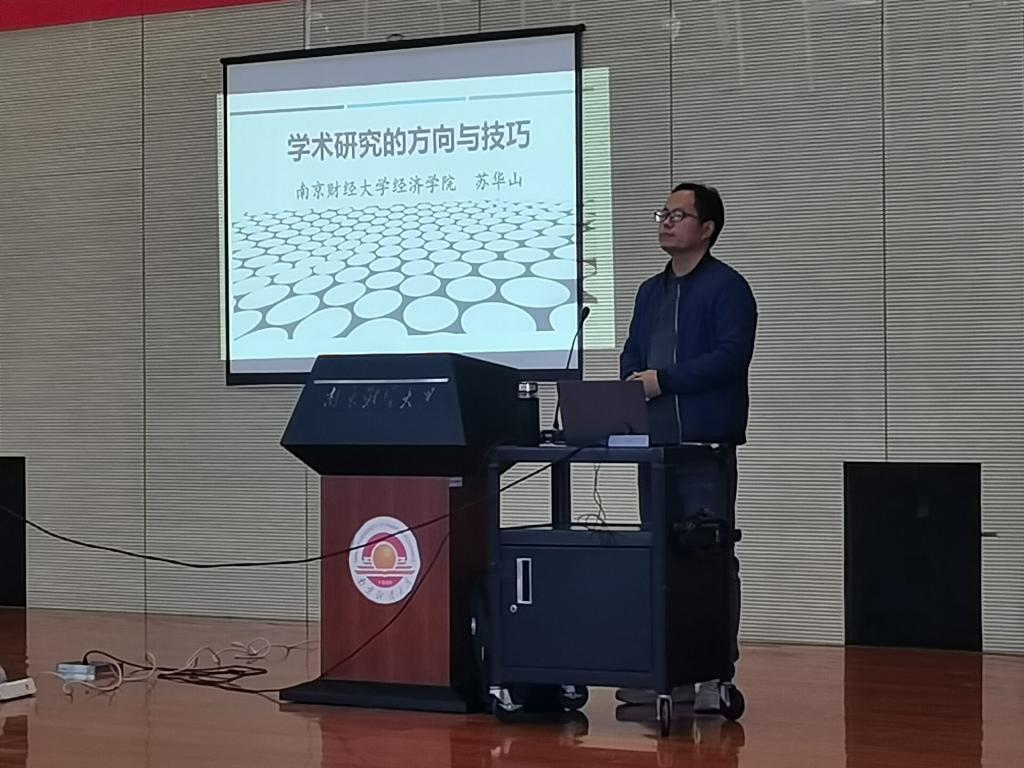 经济系副主任苏华山副教授应邀作了题为“学术研究的方向和技巧”讲座。讲座由体育博彩