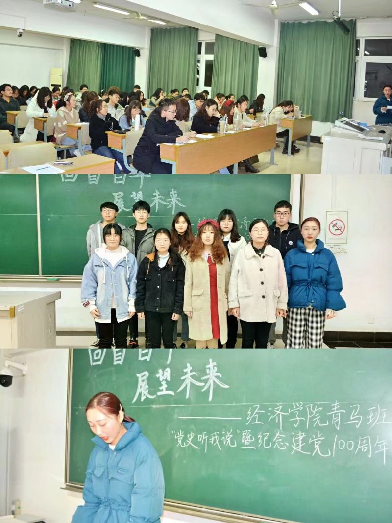 活动分为三部分,首先,青马班学员们以主人翁视角,选取典型事件,再叙我党成长之路。“腹有青马气自华”小组朗诵和PPT演讲结合,介绍了娄山关之战。“青梅竹马”小组介绍了抗美援朝战役,讲述了自己对未来的展望。“人民当家作主”小组演讲人就图片地形展示生动再现中印边境自卫反击战庞国兴小组战斗过程。“力拔山兮气盖世”小组以长征精神为主题,配上激昂的背景音乐,感染了在座学员。“青马学习”小组以视频剪辑电影《建军大业》再述南昌起义。“名字好难起”小组就革命战士卢德铭个人生平,传递革命精神。“卧龙”小组回顾百年历史,以诗朗诵和《中国机长》情景表演,赞颂了彭德怀、周恩来、邓小平、刘传健四位伟人。“爱国敬业诚信友善”小组讲述了李大钊在党发展中的作用。“好家伙针不戳”小组从计划经济时代中国到改革开放、大国外交,用自己独特的见解娓娓道来。“马克思主义接班人”小组通过剪辑视频回顾南昌起义,红军长征,新中国成立。