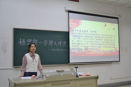 分团委在德经楼110教室开展“悟思想·劳模大讲堂”活动,分团委副书记、各班级团干部、分团委工作人员及学院部分学生参加了活动。活动分为三个环节,首先,全体同学集体观看五一劳动节宣传视频,明白劳动节的来历,了解中华优秀传统文化;听习近平总书记说给劳动者的“暖心话”,大力营造劳动氛围;通过分享一件件党史小故事,讲述以习近平同志为核心的党中央领导全国人民脱贫奔小康方面取得的伟大历史性成就,激发大家奋发向上的大能量。二是由优秀志愿者学生代表朱海荣和优秀抗疫志愿者冯叶欣开展党史学习教育宣讲活动,讲述自己的志愿者活动经历与感悟,号召大家积极参加志愿活动,大力弘扬热爱劳动、热爱学习、乐于奉献的高尚品质。三是观看学习劳模工匠视频,学习他们在平凡的岗位上默默无闻的奉献精神。然后以小组为单位进行讨论,交流自己的观影心得体会,分享身边的感人故事,大力弘扬劳模精神和工匠精神,学会感恩。