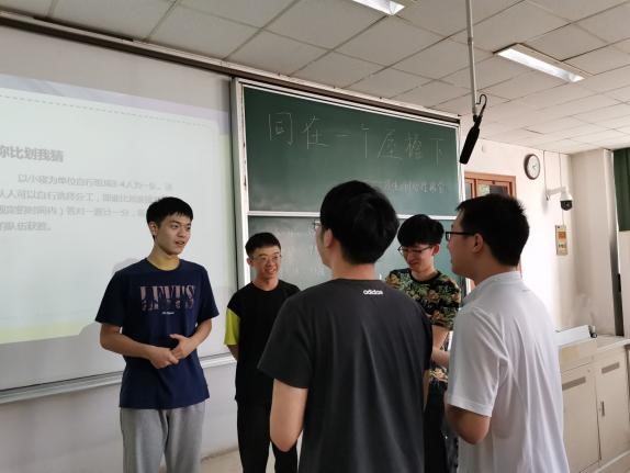 接着,班会借助“画画传递猜词”的游戏进一步加深了大寝同学之前的默契。欢笑声一时达到了高潮,现场氛围被充分调动,同学们参与热情高涨,最终以5.73秒答对的所画词语的一组取得了的胜利。