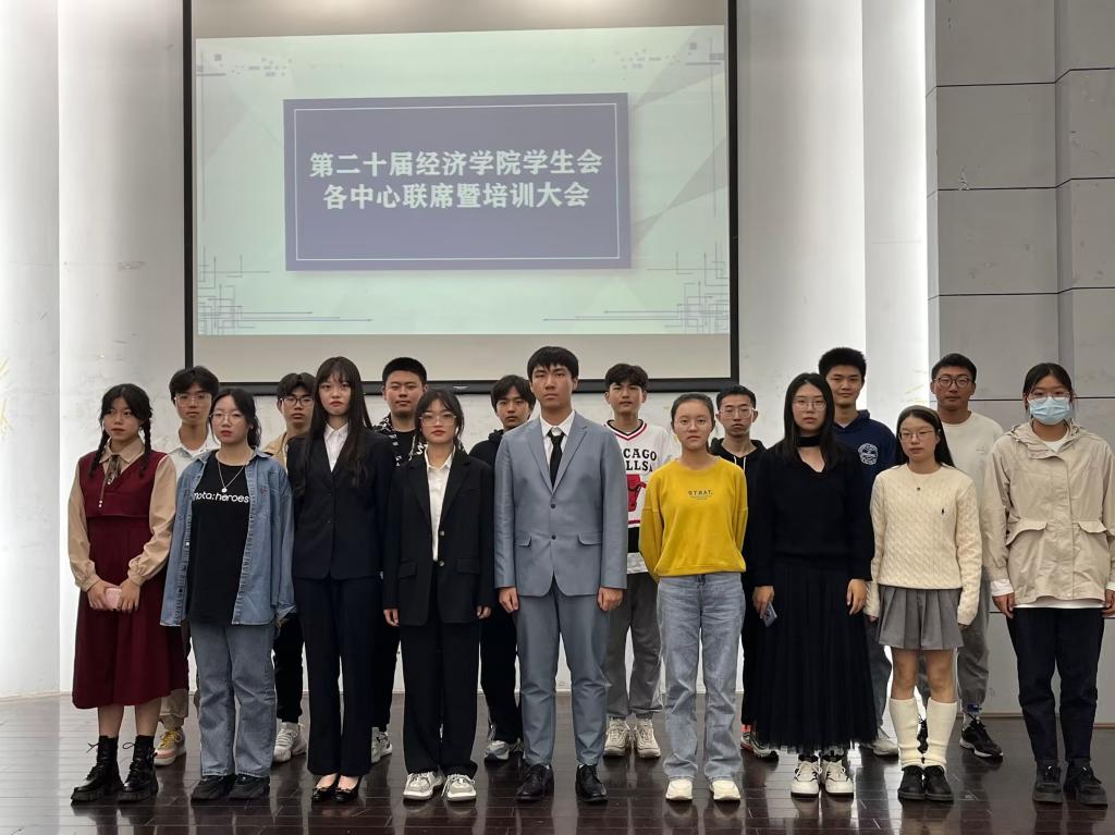 学生会各中心联席暨培训大会在德经楼二楼报告厅顺利召开。学院学生会主席、各中心部长以及全体新志愿者们参加了本次大会。会议由综合事务中心张育绮、李云峰两位同学主持。