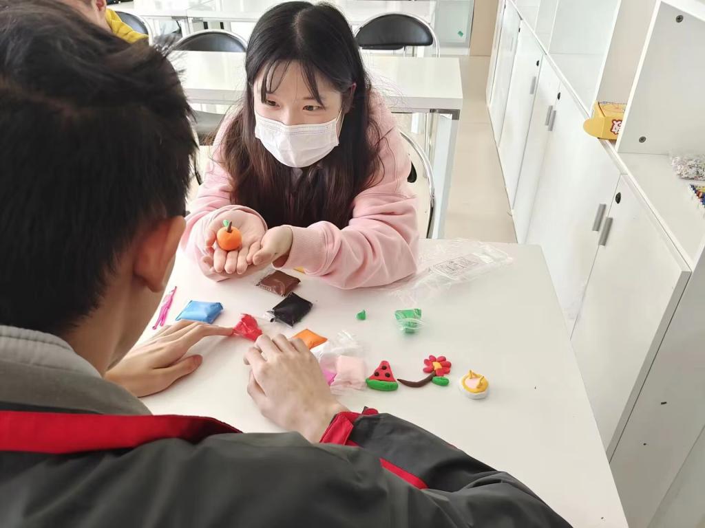 志愿者与学员们共同制作手工黏土