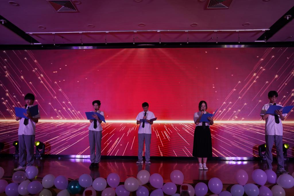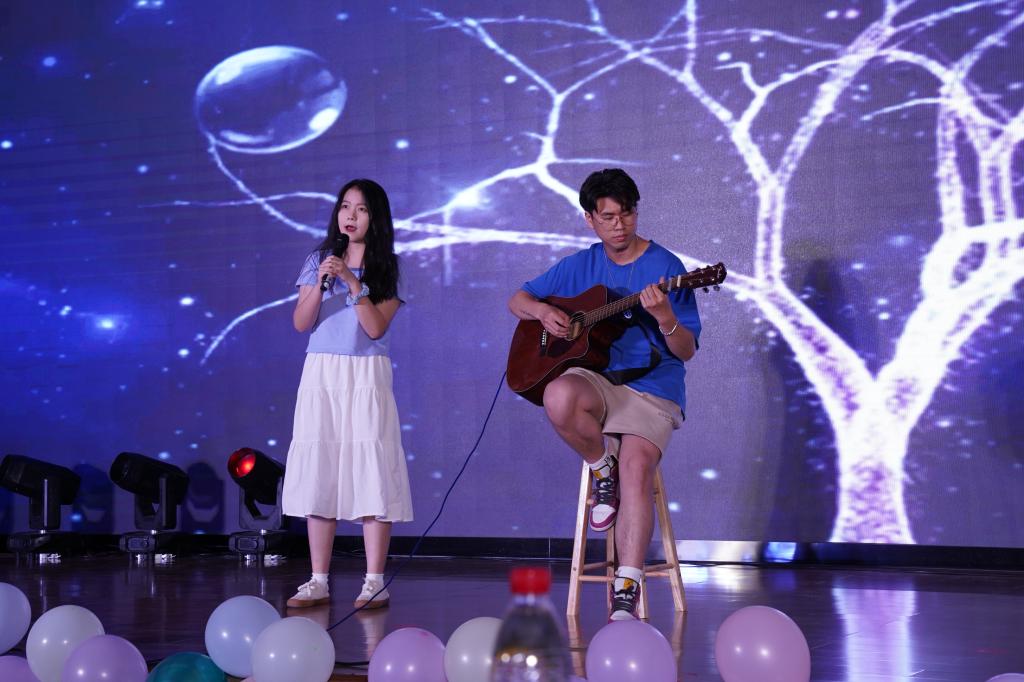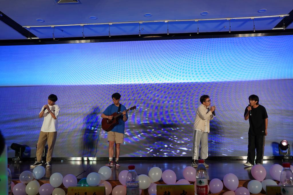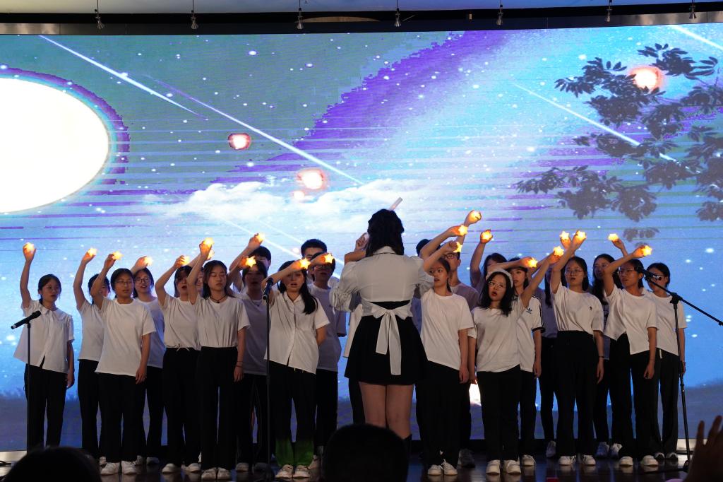 接着迎来了第三篇章。《汉服走秀》彰显了汉服文化的博大精深、源远流长,展现出华夏民族礼仪之邦的风采;独唱《我的中国心》表现了炽热的青春心与清澈的中国心;吉他弹唱《海阔天空》引起了同学们逐梦远航的奋斗回忆;独唱《下山》表达了少年一别恩师,自此行走江湖的情怀;合唱《我们的爱》仿佛让人看到了灯火阑珊处残影忽明;合唱《夜空中最亮的星》再度回首往日,赋予了友情与爱情最真诚的理解。