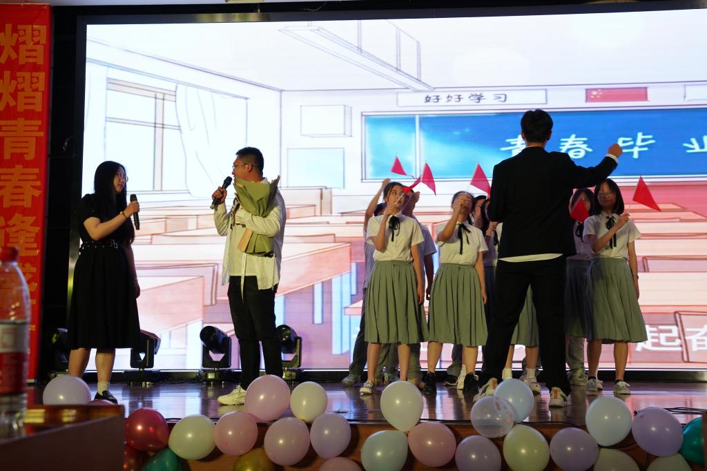 第一篇章结束,我们迎来了惊喜的老师祝福视频。视频中寄托了老师们对毕业班学生的无限祝福。在驶向未来的路上,他们意气奋发,肆意奔跑。祝愿每一位毕业生都能乘风破浪,扬帆起航,前程似锦,一帆风顺!