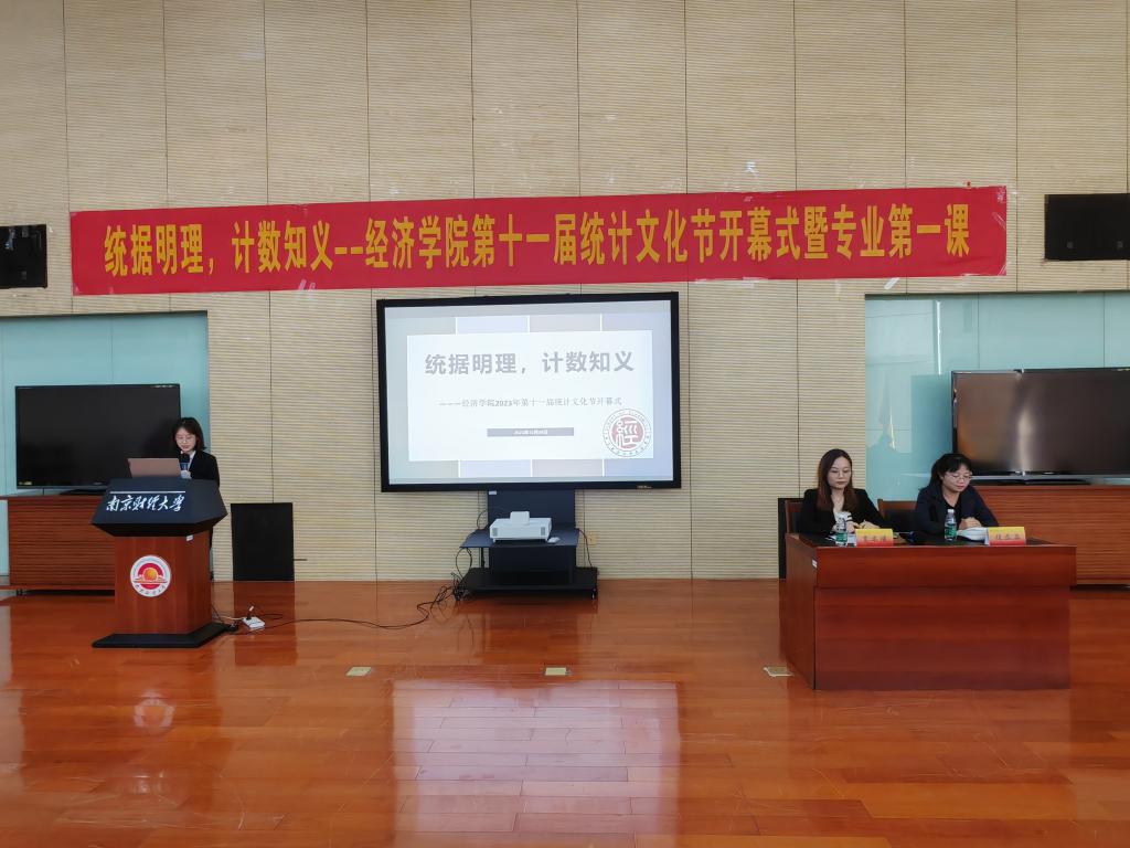 于仙林校区图书馆四楼世界之窗举办了“统据明理,计数知义”第十一届统计文化节开幕式暨专业第一课。学院党委副书记贾亦璞、统计系系主任程恭品、学院大一新生参加活动。