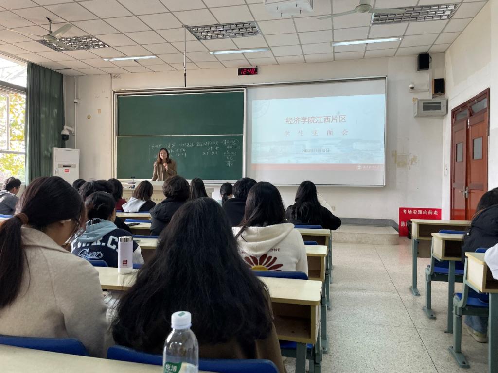 学院党委副书记贾亦璞老师介绍了学院在江西和徐州地区的生源基地建设情况和历年来学院取得的招生成果,同时对下一阶段学院的招生工作做了相关的布置和安排。贾书记指出:“学院招生宣传工作取得的成绩离不开每一位片区同学的努力,期望同学们能做好南财和高中母校之间的桥梁,为高中母校的同学传递更多南财的信息,也为南财招收到更多的优质生源”。