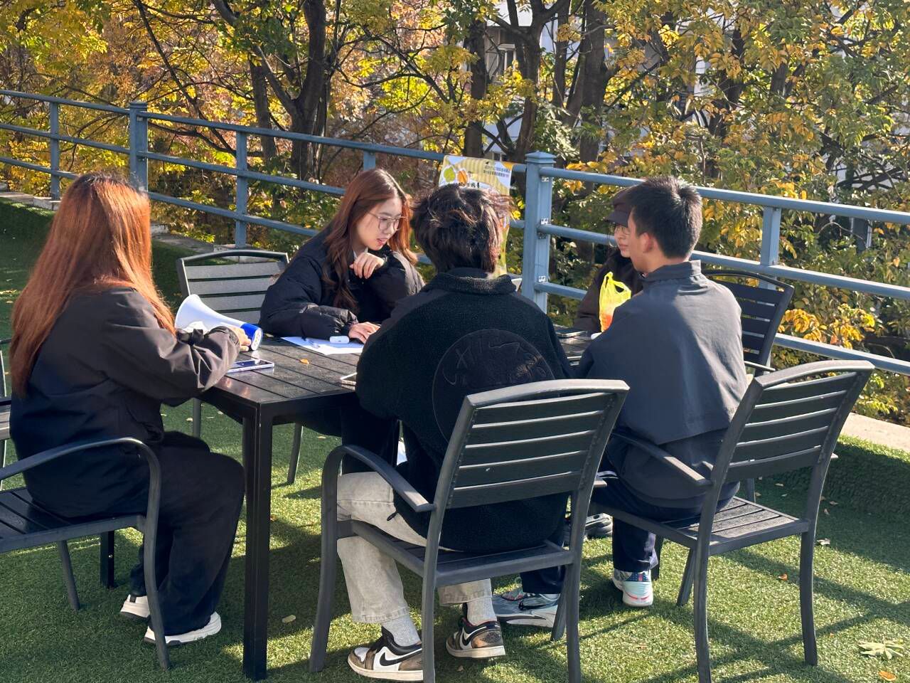 主持人喊出活动口号后,宣布活动正式开始。参赛者们迅速奔至西苑操场打卡点,进行“音乐乒乓球”和“旋转气球”的任务挑战。“旋转气球”的挑战要求小组两位成员手牵手努力夹住气球,最终根据完成的时长获得相应的盖章。另一边的“音乐乒乓球”的挑战中,小组两位成员合理分工、配合默契,极大提高了自身的团队协作能力。