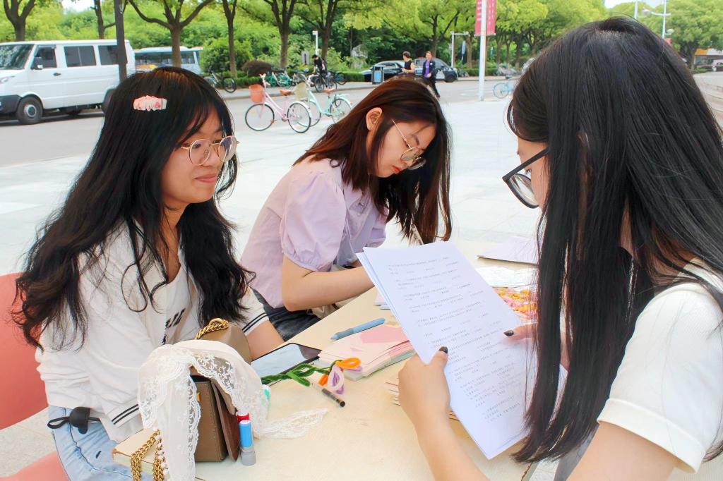 最后,在大学生活动中心广场,同学们现场制作扭扭棒花束。虽然手工制作的花束并不完美,但这是时间的馈赠,是心意的灌注,独一无二的。除了制作扭扭棒花束,一旁的diy漆扇也可供同学们选择。总之,手工制作的过程十分治愈,同学们感受着太阳的暖意,感受着生活的美好,让心灵得到抚慰。