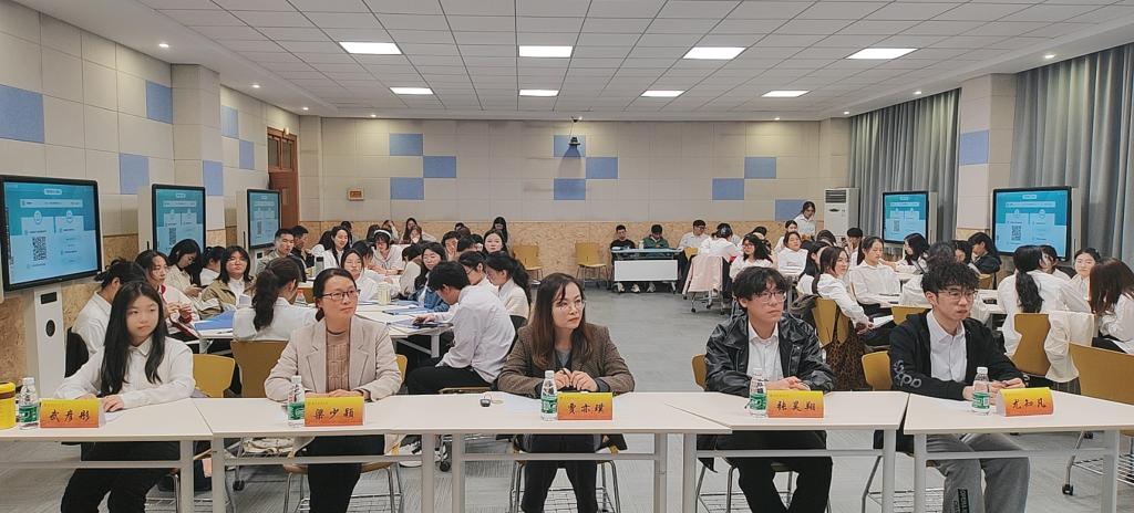 党委副书记贾亦璞老师,学工办主任梁少颖老师,2021级本科生尤知凡、武彦彤和张昊翔同学担任评委,体育博彩