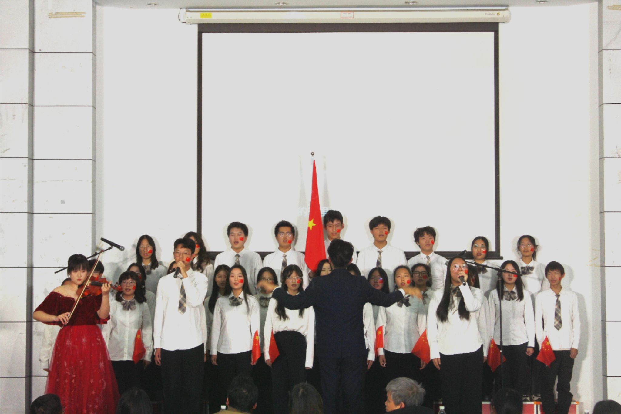 经济基地班《骄傲的少年》在小提琴的悠悠琴声中响起,少年负壮气,奋烈自有时,少年生逢盛世当不负盛世,生逢其时当奋斗其时。一曲终了,忆峥嵘岁月,看今朝辉煌,少年愿承百舸争流之势,续中华民族之魂。