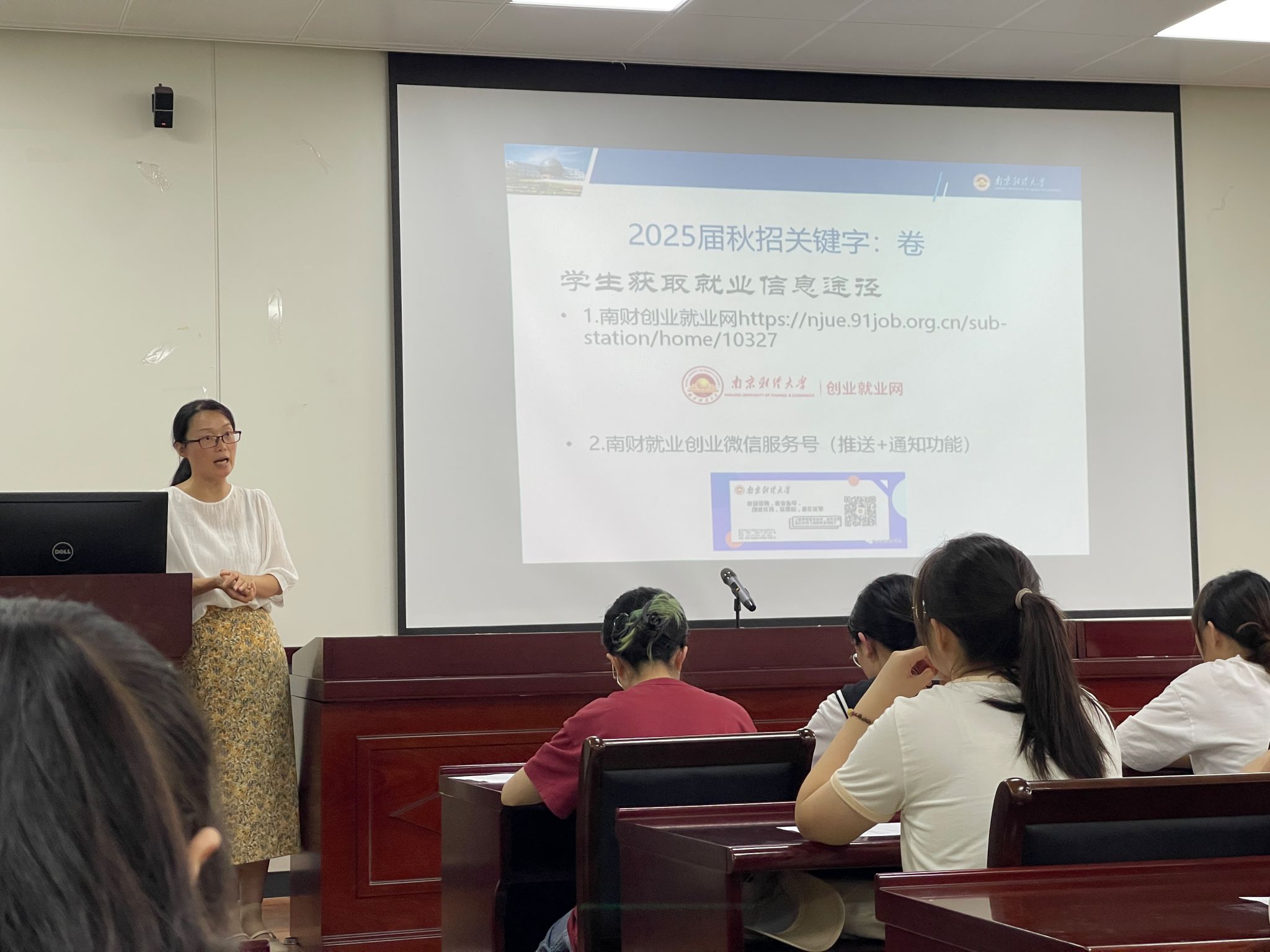 此外,学院还邀请了2024届毕业班辅导员张闻老师对2025届毕业生的就业工作进行了指导。张老师详细分析了2024届毕业生的就业去向与质量,解读了2024届毕业生就业工作实施方案,提出了针对2025届毕业生的就业工作推进计划建议,强调了各时间节点的重要性。