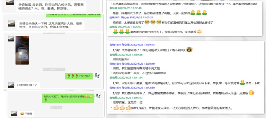 院党委副书记袁怡琨老师说:“无论对于在校生还是校友而言,南财是你们的家,经院是你们的家,有困难家人一起分担,有喜讯家人一起分享。疫情挡不住家人的关怀,待疫情消散、春暖花开,我们相约在南财再次相遇,续写家的温暖。”