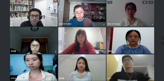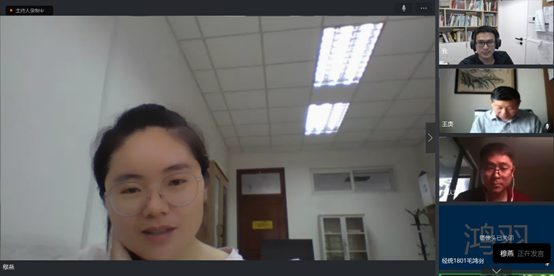线上成果汇报课由本学期授课教师詹鹏主持,课程负责人王庚教授、课程组穆燕博士、统计系副系主任李庆海副教授作为点评专家。为了让同学们更好地“补缺补差”,课程组采用了一种新型实践模式:学生撰写报告初稿——挑选相对优秀报告——研究组1汇报报告——教师点评报告——研究组2汇报报告——教师点评报告。在所有研究组汇报完毕后,课程组对报告总体情况进行总评。
