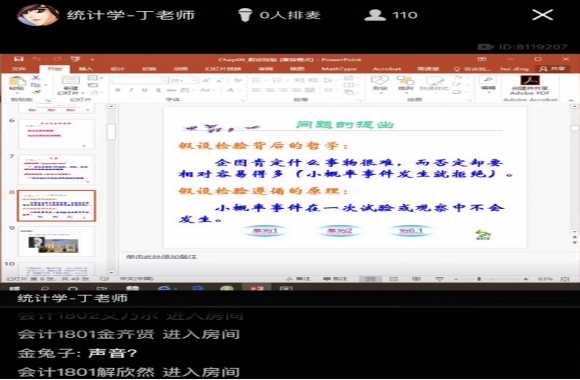 统计系于4月21日上午开展了线上教学观摩活动,组织教师观摩青年教师丁辉主讲的《统计学》课程。