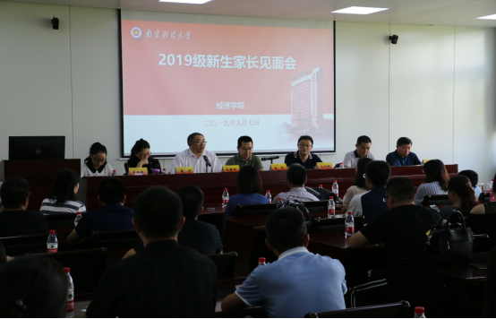 2019级新生家长见面会在德经楼307会议室举行。校党委常委、宣传部部长石奇,学院党委书记陈耀辉,院长朱红根,院党委副书记袁怡琨,经济系和统计系主任及教师代表出席此次会议。会议由陈耀辉书记主持。