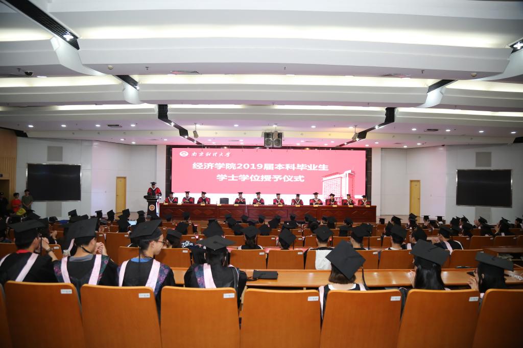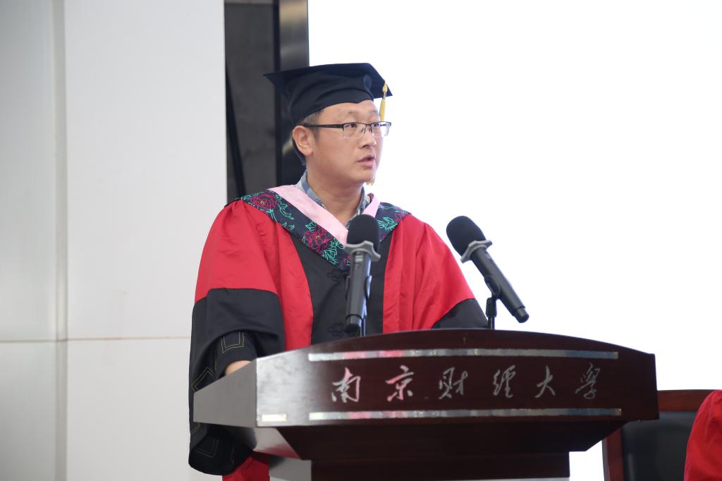 此次毕业生学位授予仪式在庄严肃穆的国歌中拉开序幕。仪式开场,朱红根院长致辞。他首先代表全体教师向2019届毕业生表示了热烈的祝贺。面临即将迈入新征程的毕业生们,朱红根院长向同学们寄予了三点期望:一是希望毕业生们保持强大的内心,主动适应社会,注重内在发展,不断反思、不断总结、不断进步。二是希望大家坚持自己的梦想。他认为,只有保持坚韧的品质,用豁然的心态面对高峰和低谷、用宽容的心境面对失落与挫折,方能在没有彩排的人生中直播最好的自己。三是希望大家成为有担当的祖国事业建设者。他表示在民族与祖国建设的新时期,同学们应该肩负起民族发展振兴的责任,奋发图强,为祖国繁荣昌盛做出贡献。最后,朱红根院长希望每位同学能记住自己“南财小经灵”的身份,发扬母校精神,自谦自信、勇当国民表率,务实超越、志为海岳金梁。