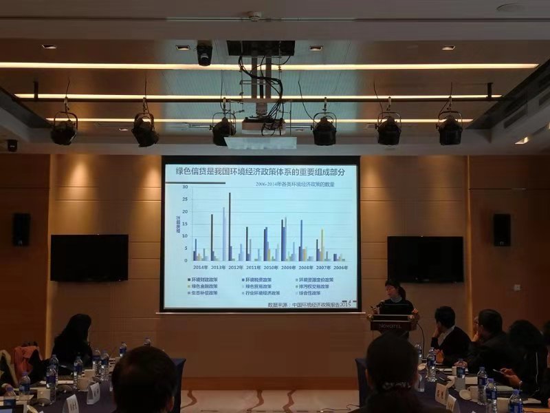 来自国际机构、高校、政府、银行、企业的专家学者们围绕 “绿色信贷”的主题分别从不同角度展开讨论。会议回顾了我国绿色信贷政策的发展历程,分析了现阶段绿色信贷业务的发展特征及发展中存在的诸如“绿色信贷政策市场机制不健全”等问题。并结合绿色信贷业务在江苏省各银行的案例研究,提出了建立和完善我国绿色信贷政策的建议。中国人民大学环境学院王华院长在听取了各方观点后给予逐一点评并展开更深入细致的讨论。