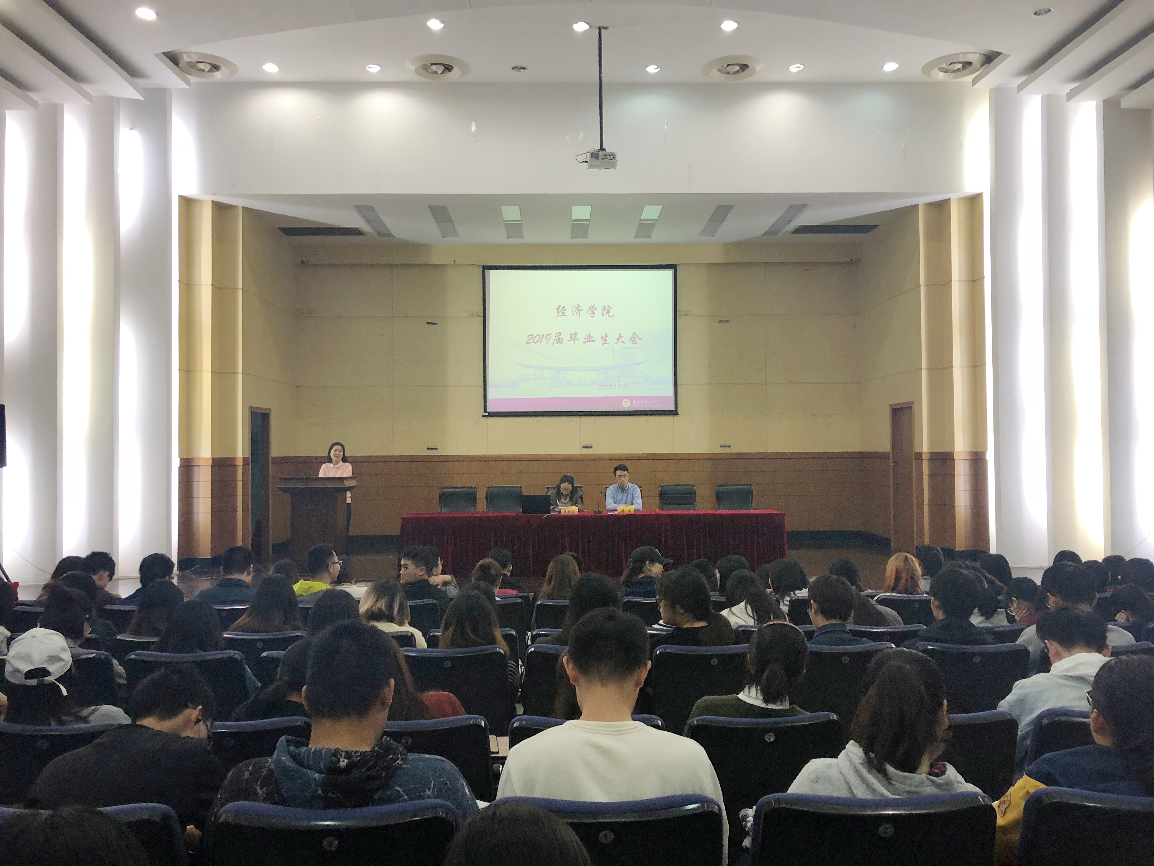 在德济楼报告厅召开2019届毕业生大会。副院长张成、党委副书记袁怡琨、学工秘书尹海燕、毕业生辅导员徐昊翔及2019届全体毕业生参加此次大会。