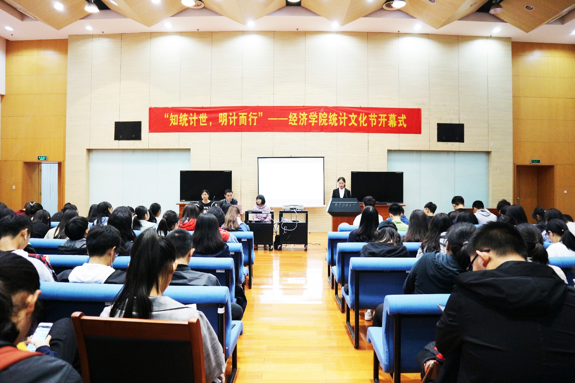 统计系系主任韩中副教授,分团委书记聂平出席了开幕式,经济统计学全体大一同学参加了此次开幕式。