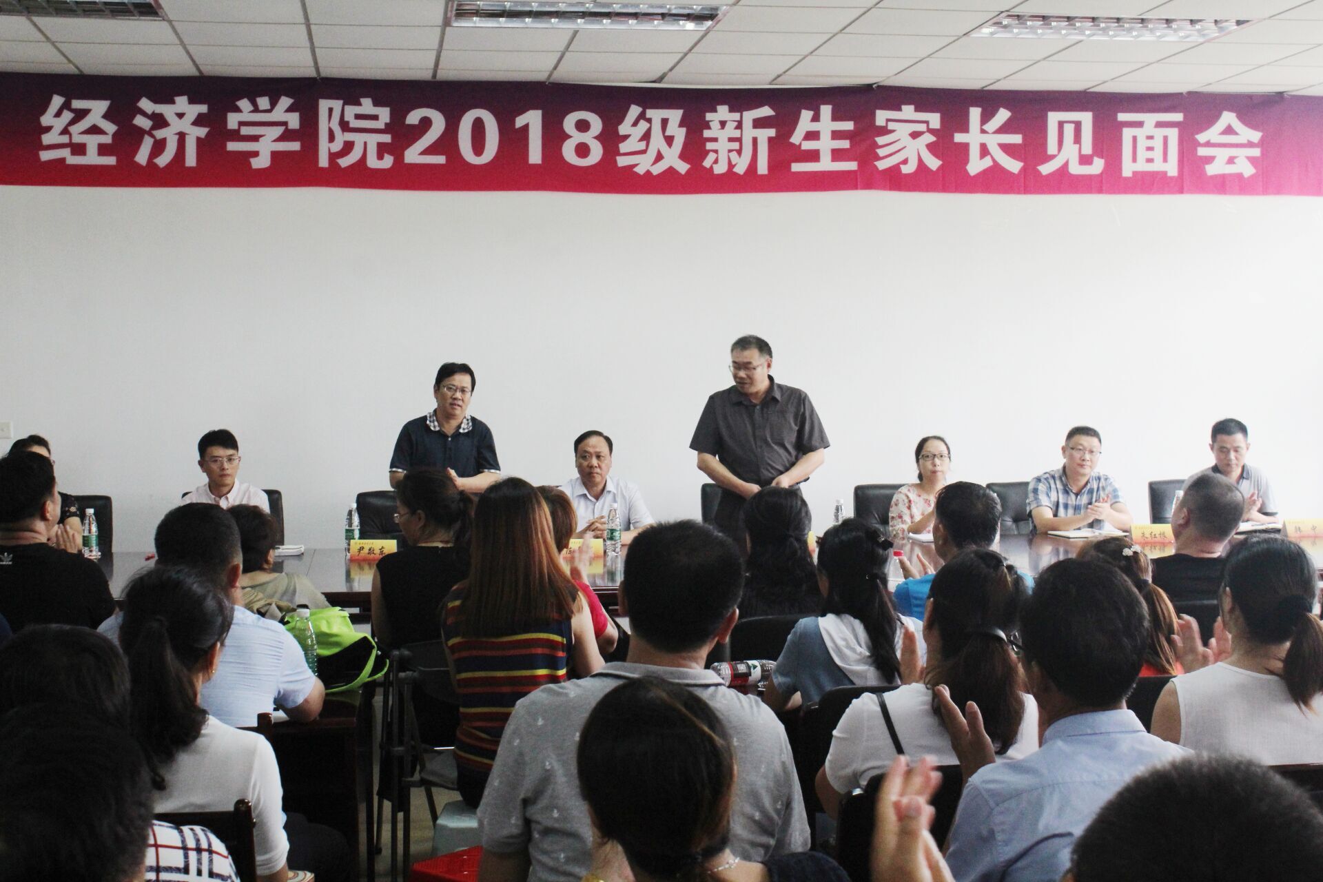 2018级新生家长见面会在此举行。校党委书记陈章龙、院党委书记陈耀辉、院党委副书记袁怡琨、副院长尹敬东、张成、朱红根,经济系和统计系教师代表等出席此次会议。
