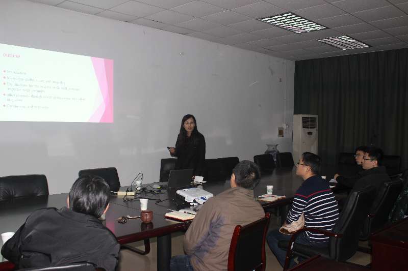 副院长叶林祥教授主持,国际经贸学院青年教师史青博士做了“全球化与不平等”的学术报告。