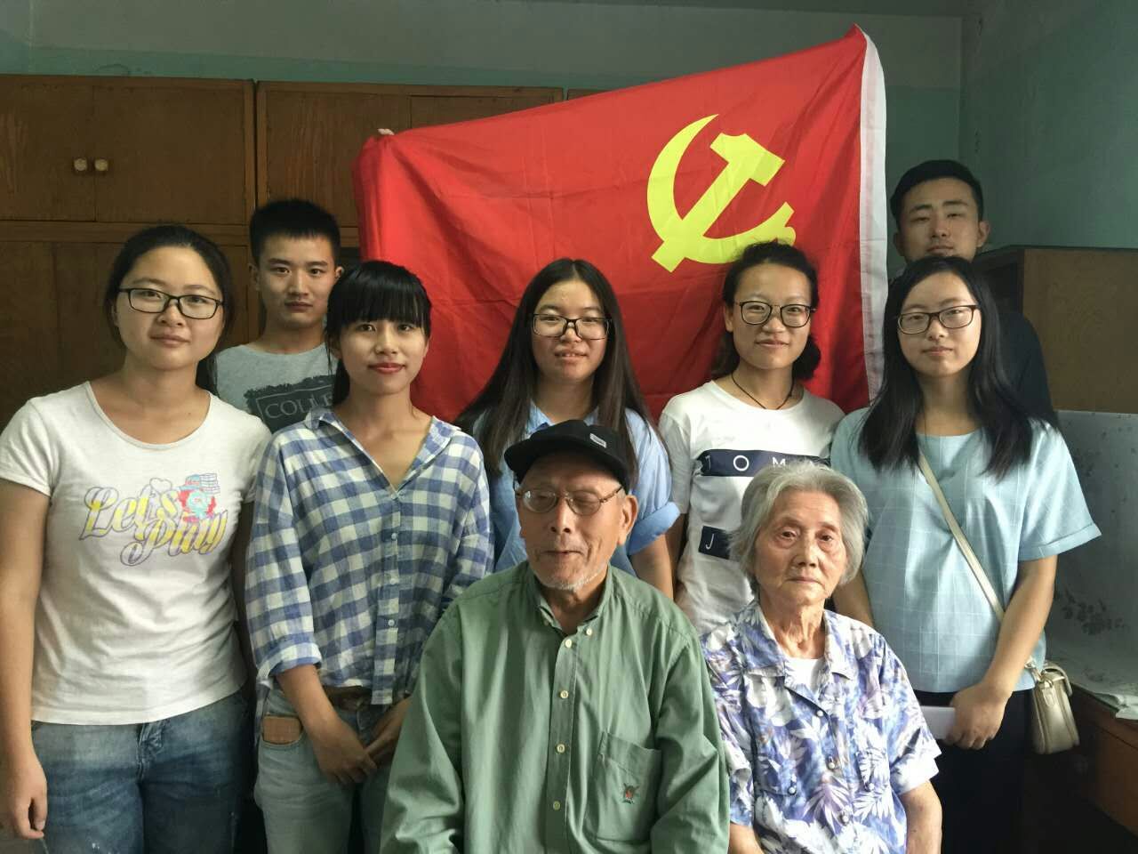 学生党员前往福建路校区探访我校参加过抗战的老领导,聆听抗战故事。