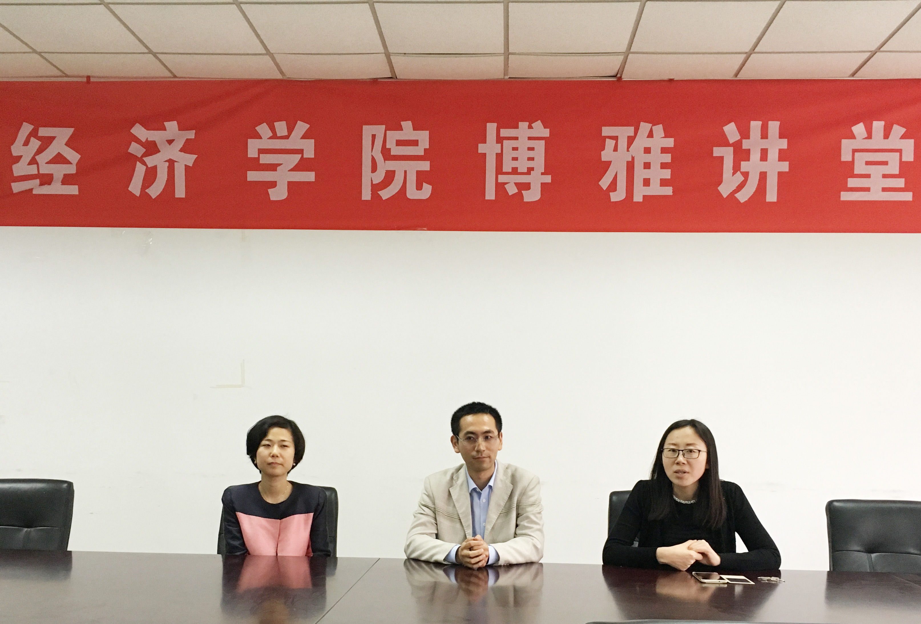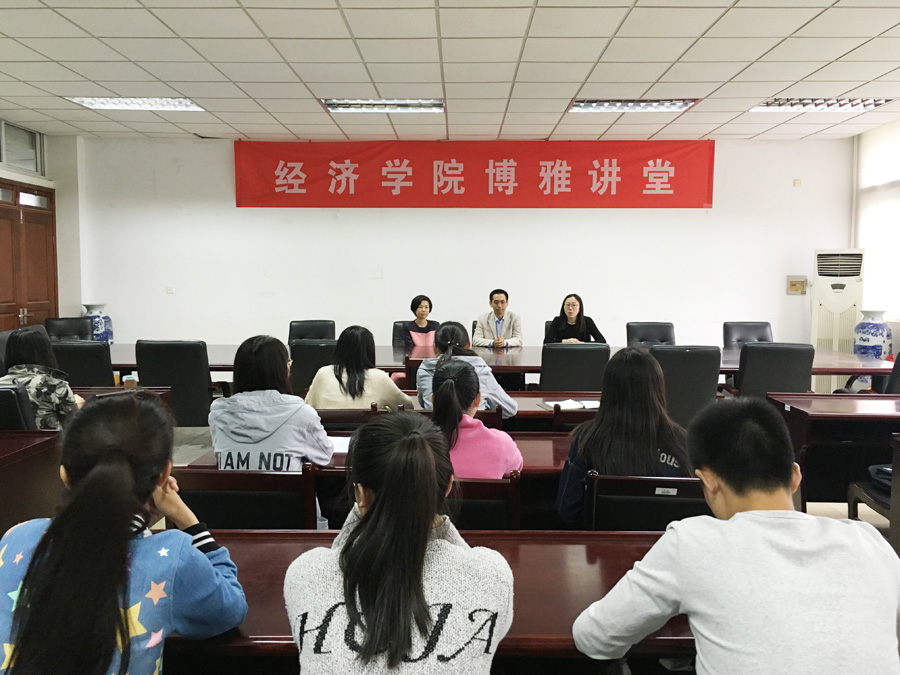 在经济学科楼307会议室举办博雅讲堂第一讲,本次活动由院党委副书记郝园园老师主持,来及经济学专业04级的苏哲、张楠两位优秀校友和同学们就大学成长经历和职场感悟做了精彩分享,院学工秘书尹海燕、辅导员徐昊翔、全体党员和部分13、14级的学生参加了本次活动。