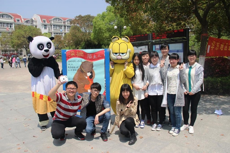 学生会举办的“你好,陌生人”温暖校园活动在学校西苑举行。穿戴可爱玩偶服的志愿者们举着“亲,来抱抱吧”和“我可以抱你吗?”的牌子,给来往的同学们送上拥抱。一个个温暖的拥抱,让情感在彼此间传递。