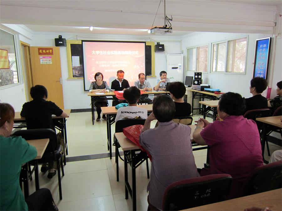 6月18日下午,体育博彩 暑期社会实践基地在五塘新村二段社区正式揭牌,幕府山街道社会事务科科长李献、二段社区书记谢文龙、体育博彩 学工办徐山昌老师、团总支书记郝园园老师参加了此次挂牌仪式。