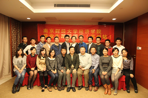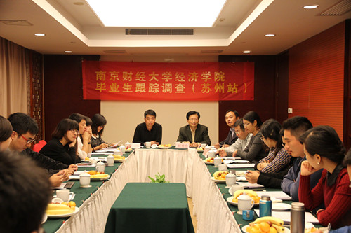 在苏州召开了毕业生座谈会,院党委书记胡荣华教授,统计系教师陈耀辉教授、李刚教授,学工秘书徐山昌老师,研究生秘书王顺善老师,辅导员尹海燕老师、黄晓娟老师及毕业生代表20余人参加了座谈。师生就大学四年的收获,学校在教学、学生管理中可以改进的方面,工作中遇到的困难,以及希望学校为毕业生构建继续学习和交流平台等问题进行了广泛交流。