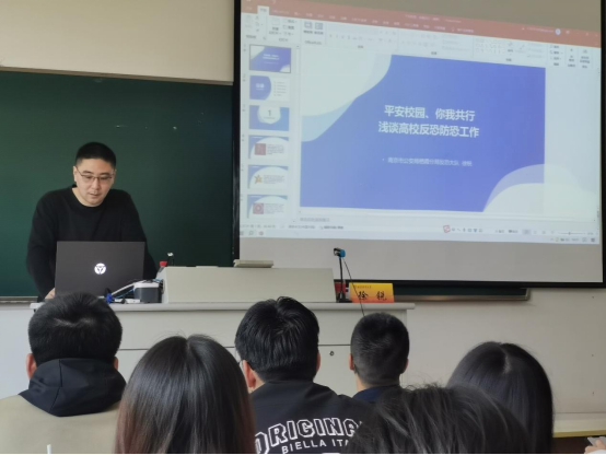 宣讲过程中,徐大队长对总体国家安全观进行了介绍,并着重介绍了反恐防恐相关知识,通过交流互动和播放相关视频,教育同学们共筑反恐防控安全防线。随后,结合现实案例,就校园宗教、电信诈骗等话题,进行案例解剖。
