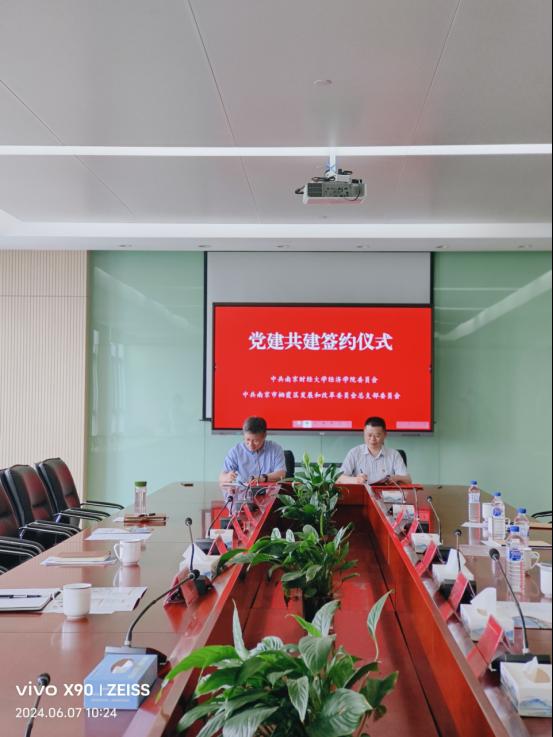 党委委员、经济系教工党支部书记杨泳冰、统计系主任程恭品、经济系主任陈博欧参加签约仪式。此次党建共建协议成功签约,标志着体育博彩