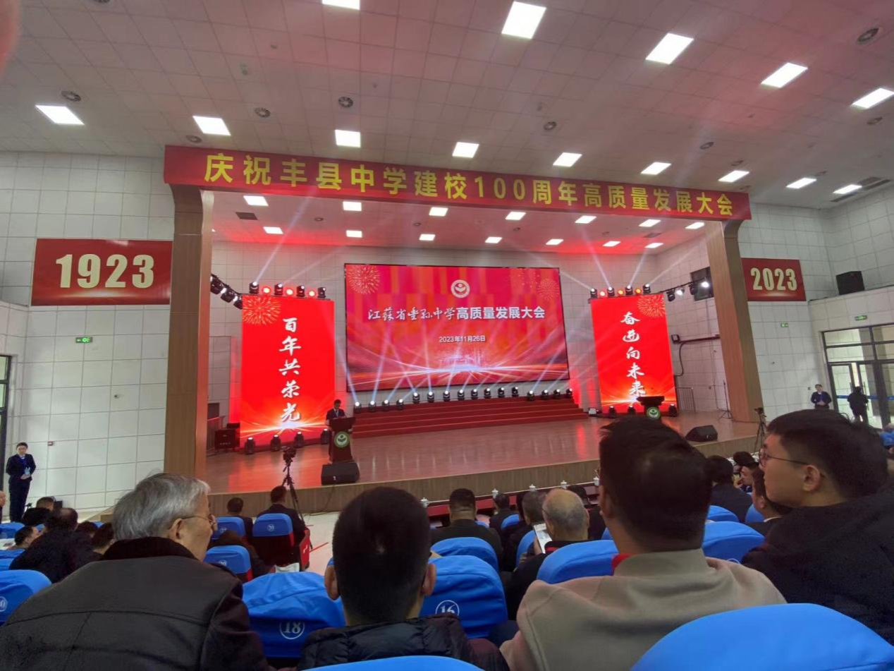 在徐州丰县地区的招生宣传工作力度,进一步吸引丰县的优质生源报考我校,2023年11月,学院招生宣传老师张闻赴江苏省丰县中学参加100周年校庆高质量发展大会,并代表学校致以诚挚的祝福。