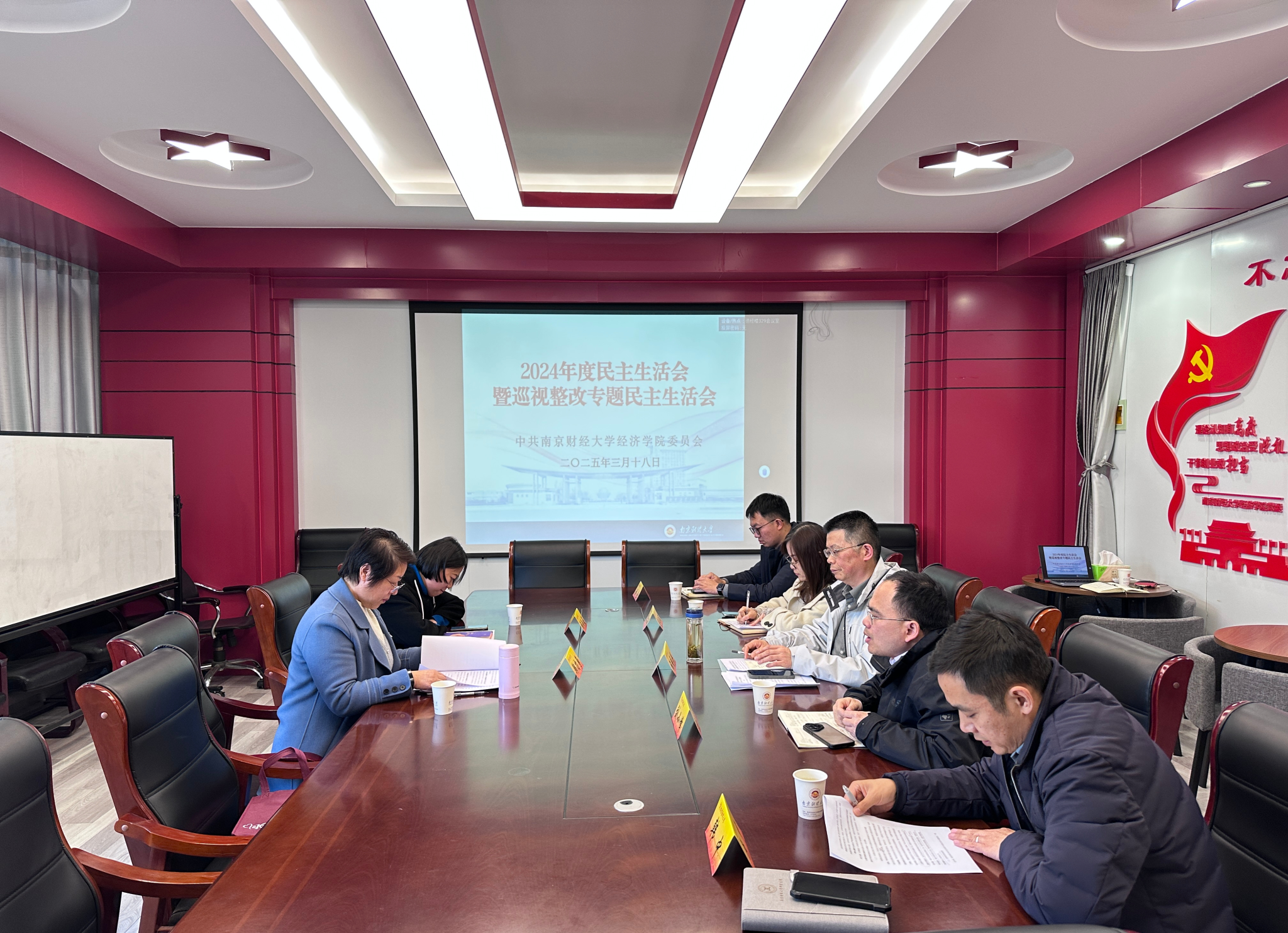 在专一329会议室召开2024年度民主生活会暨巡视整改专题民主生活会。学校督导组成员党委学生工作部部长、学生处处长韩力争、金融学院组织员张雨薇、学院党委书记张圣兵、副院长(主持工作)刘小峰、学院党委副书记贾亦璞、副院长韩中以及院长助理陈杰共同参会。会议由学院党委书记张圣兵主持。