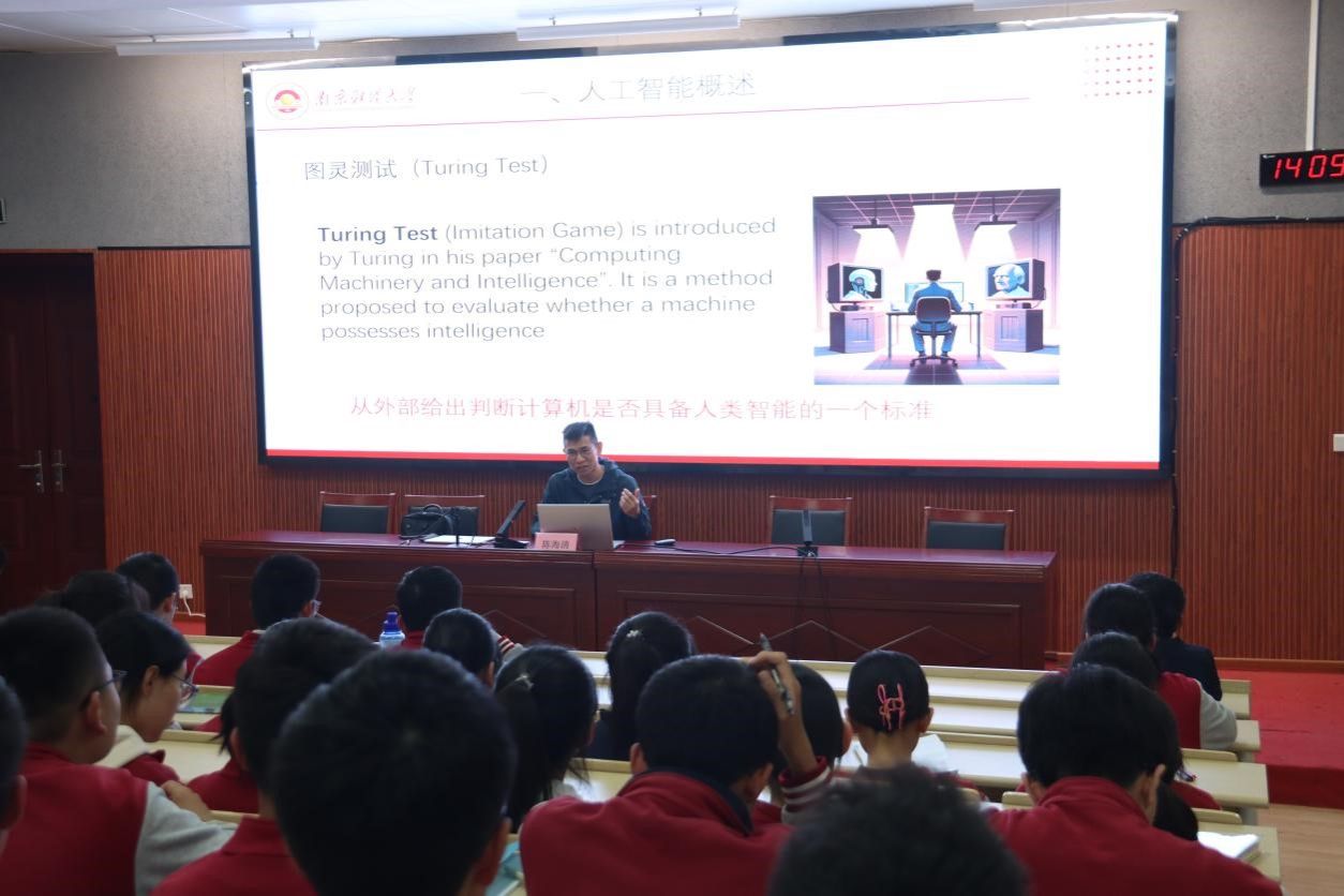 副教授陈海清给徐州中学学生开设了题为《人工智能的前世与今生》的专业讲座,前沿的内容和精彩的讲解获得了在场学生的一致好评。