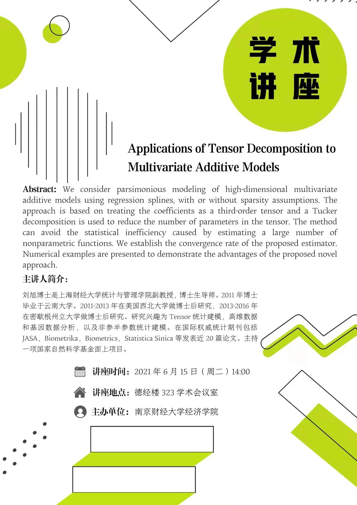 学术讲座:Applications of Tensor Decomposition to Multivariate Additive Models