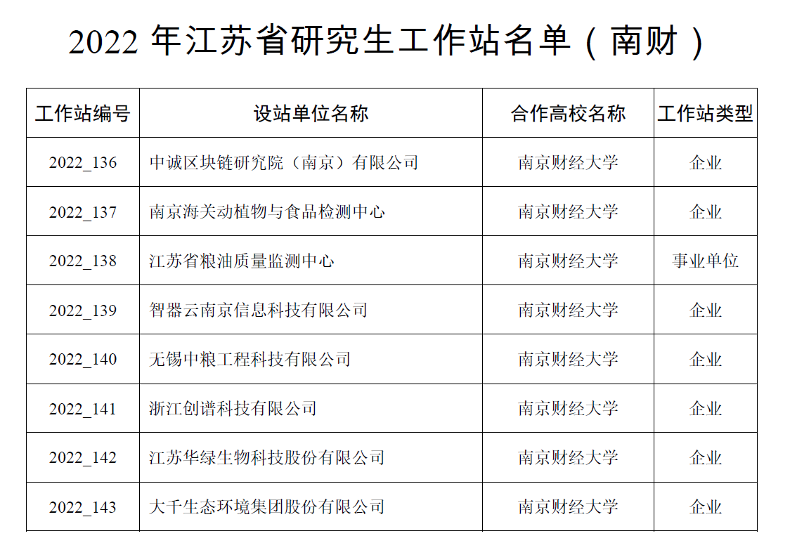 申报的中诚区块链研究院(南京)有限公司被批准为2022年江苏省研究生工作站,本年度南财全校共获批8个省级研究生工作站。