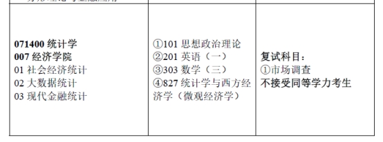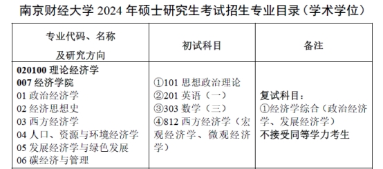 2024年硕士研究生招生学科(专业)共4个:0201理论经济学(学硕)、0202应用经济学(数量经济学方向,学硕)、0714统计学(学硕)、0252应用统计(专硕)。