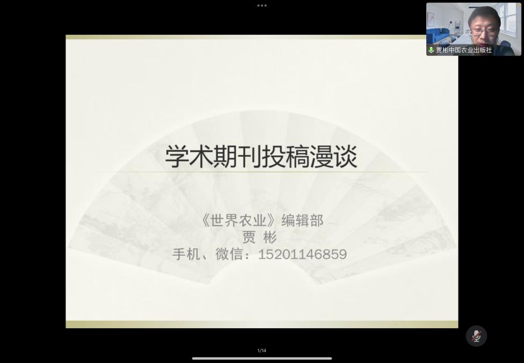 9月28日晚,中国农业出版社期刊出版分社副社长、《世界农业》执行主编贾彬研究员在线上为体育博彩