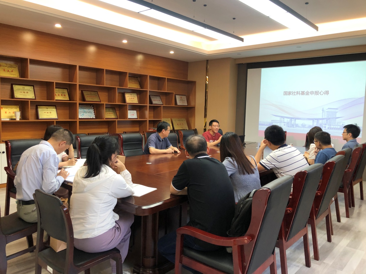 在交流会上,师磊老师结合自己申报社科基金的经验,围绕选题、研究内容、创新点和研究基础四个方面,介绍了国家基金申请中的注意事项。师老师强调,精工出细活,申报书是在日复一日的不断打磨中日益精进、逐渐完善的,建议大家尽早完成初稿,在此基础上通过自我修改、同行交流和专家指导等方式不断提高申报书质量。