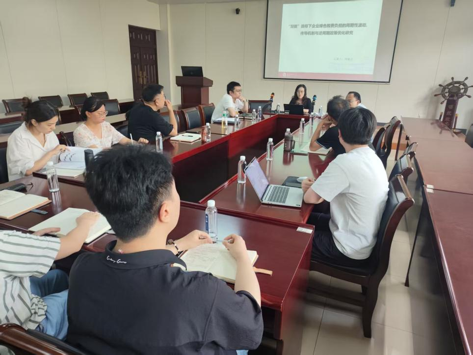 何敏元老师汇报了“‘双碳’目标下企业绿色税费负担的周期性波动与逆周期政策优化”,指出2018—2023年工业企业绿色税费负担与PMI呈现“顺周期”错位,与逆周期调节目标背道而驰。